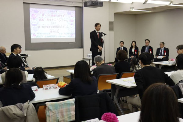 [藪岡 茂樹 先生] コロナ禍の中、児童生徒一人一人が健康について考える機会が増えていることと思います。どの作品も、歯と口の健康について考えたことを見る人に伝わるように工夫されており、健康に過ごそうという明るいメッセージが印象的でした。