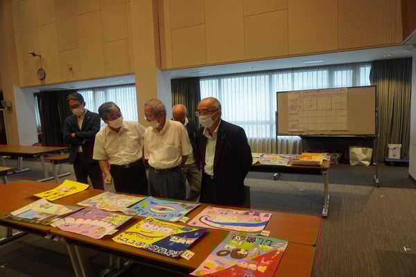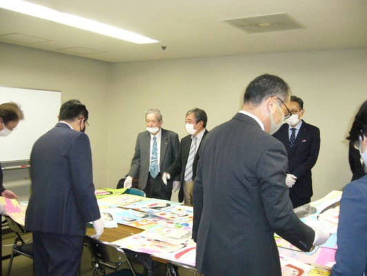 応募枚数398枚(幼稚園5枚、小学校345枚、中学校42枚、高等学校6枚)より入賞作品41枚(幼稚園1枚、小学校27枚、中学校10枚、高等学校3枚)を選出しました。入賞作品のうち、小学校低学年、高学年、中学校、高等学校から最も優れた作品より6点を選出し、日本学校歯科医会主催の中央審査会に大阪市の代表として送付しました。次に優れた作品5点を大阪市学校歯科医会会長賞とし、応募者全員に参加賞を贈呈しました。今回は読売新聞社様の多大なご協力を得て、募集にあたりポスターを作成し、協賛業者社様からも各協賛社社賞を作っていただきました。