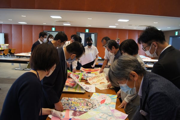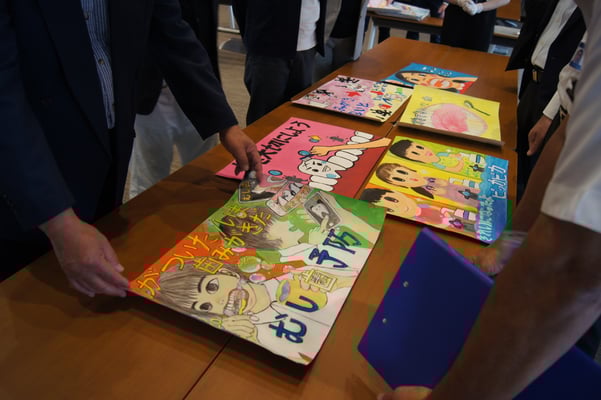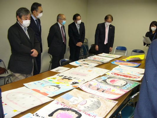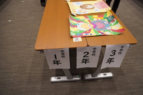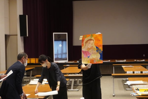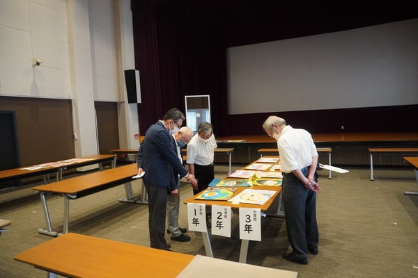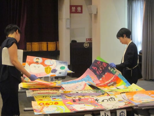 応募総数345枚(幼稚園11枚、小学校296枚、中学校38枚)より1次審査で入選作品55点(幼稚園11枚、小学校34枚、中学校10枚)を選出しました。