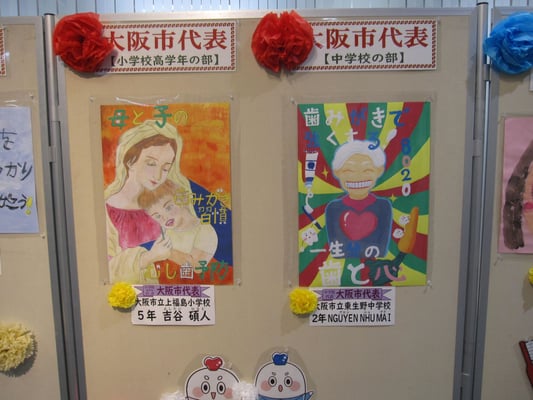 最終審査で入選作品の中より最もすぐれた作品4点(幼稚園1点、小学校低学年1点、小学校高学年1点、中学校1点)を選出し大阪市代表作品とし公益社団法人日本学校歯科医師会主催の中央審査会に推薦いたしました。