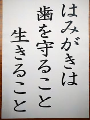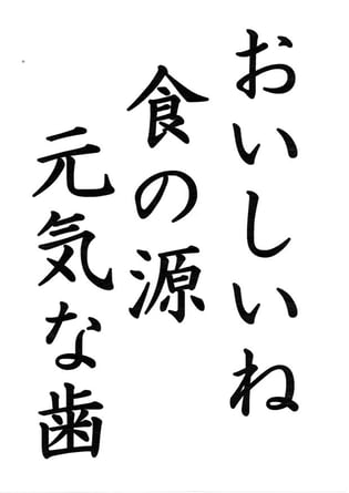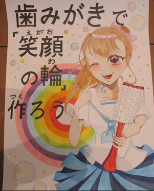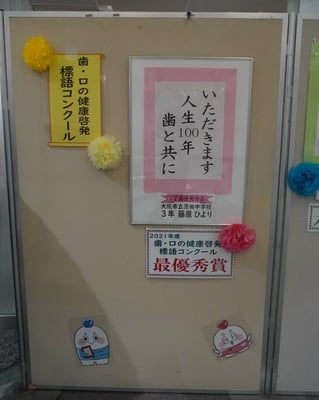 なおこの作品は日本歯科医師会・日本学校歯科医会が主催するコンクールの標語の中で最優秀作品に選出されました。この標語は令和4年度「歯と口の健康週間(令和4年6月4日~10日)を中心に、口腔衛生普及に関する全国的な広報活動に使用される予定です。