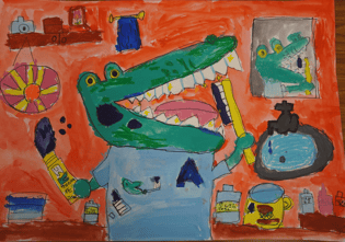 次にすぐれた作品4点(幼稚園1点、小学校低学年1点、小学校高学年1点、中学校1点)を大阪市学校歯科医会会長賞とし選出しました。